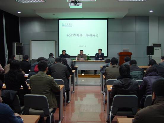 3月8日上午,设计咨询部干部动员会在公司南四楼会议室召开。万军总经理、张雪铭副总经理、王大春副总经理等公司领导以及设计咨询部本级及下设机构八个室、所的行政和技术负责人共48人参加了会议。