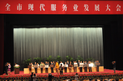 9月29日,在杭州市委、市政府组织召开的全市现代服务业发展大会上,我司荣获2009年杭州市服务业百强称号,并受到市委、市政府隆重表彰。这是我司继去年获得2008年度杭州市服务业百强后,再次荣登年度杭州市服务业百强榜,可喜可贺!