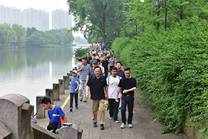 浩浩荡荡的正行队伍绕公园人工湖一圈后,穿过体育公园,来到上塘河边,沿着上塘河向南进发。当日天气凉爽,河边道路又都在植被的庇荫之下,空气中弥漫着满满的负氧离子,欢乐正行活动持续了2小时左右。