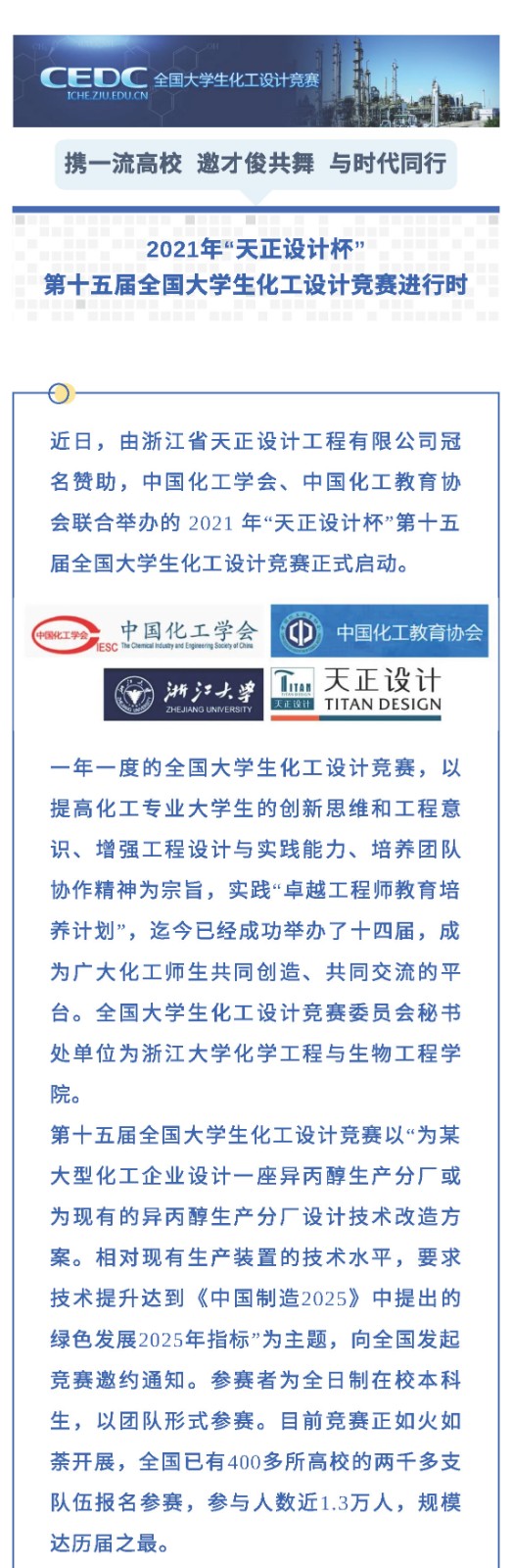 携一流高校 邀才俊共舞 与时代同行——2021年“天正设计杯”第十五届全国大学生化工设计竞赛进行时