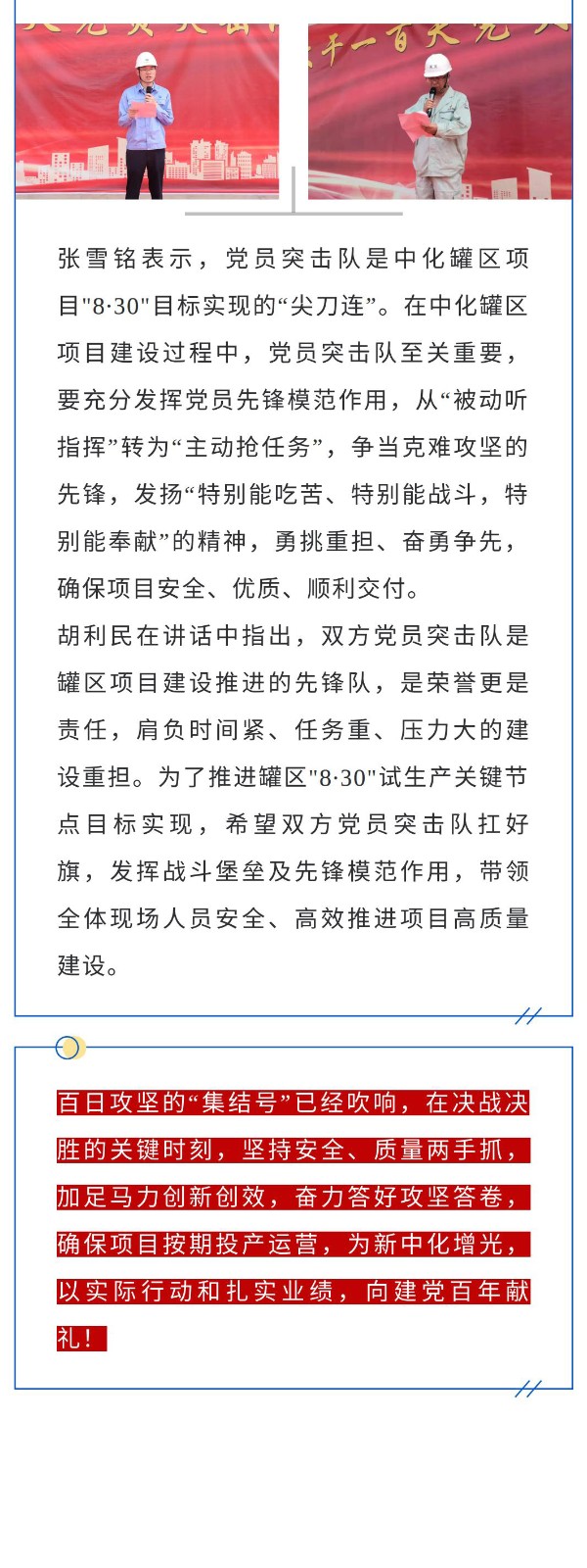 吹响突击队集结号 决战决胜百日攻坚——中化连云港循环经济产业园罐区一期工程举行"大干一百天"党员突击队授旗宣誓仪式