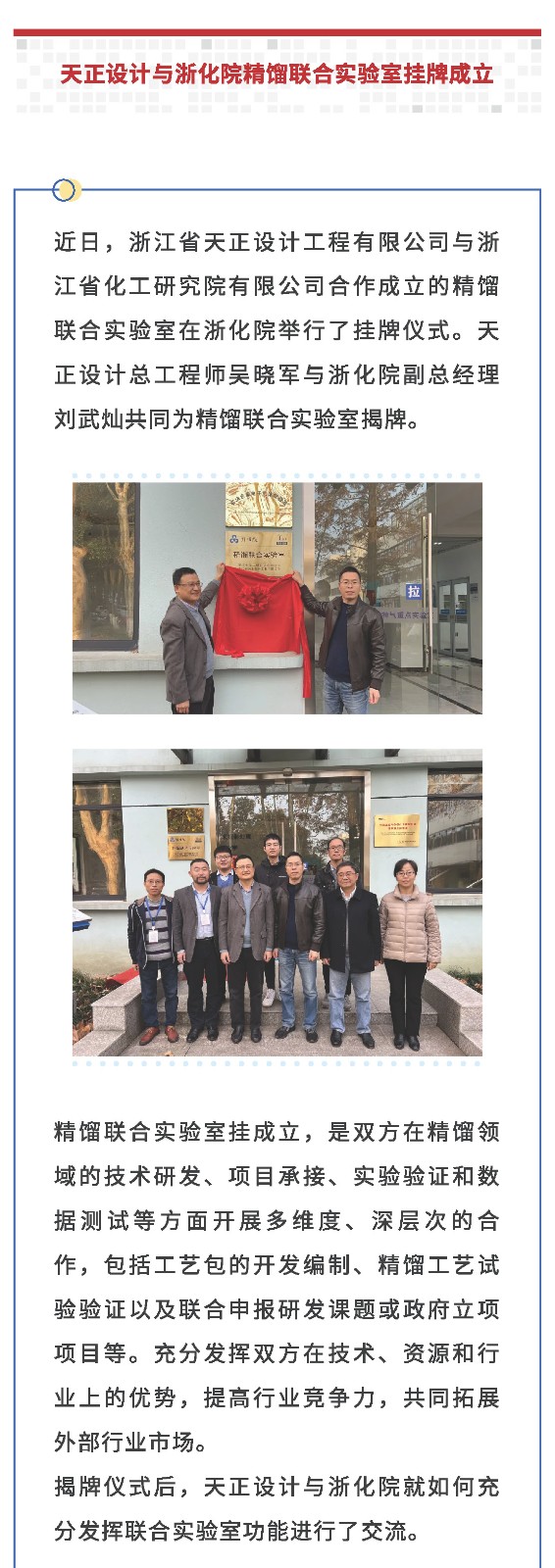 天正设计与浙化院精馏联合实验室挂牌成立